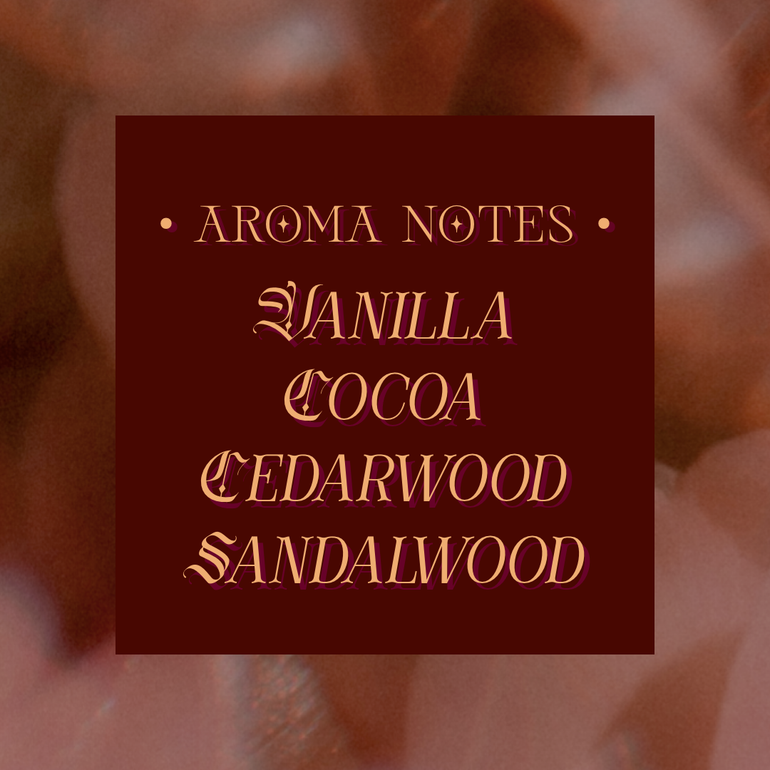 Indulge in the decadent blend of rich cocoa soft vanilla, entwined with seductive sandalwood and musky cedarwood.